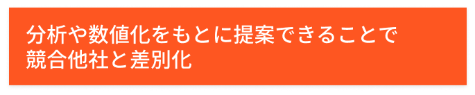 見える化された数値に基づいた説明と提案ができるため、クライアント様にも納得して話を進めていただけています。